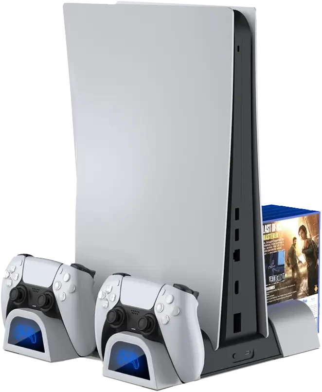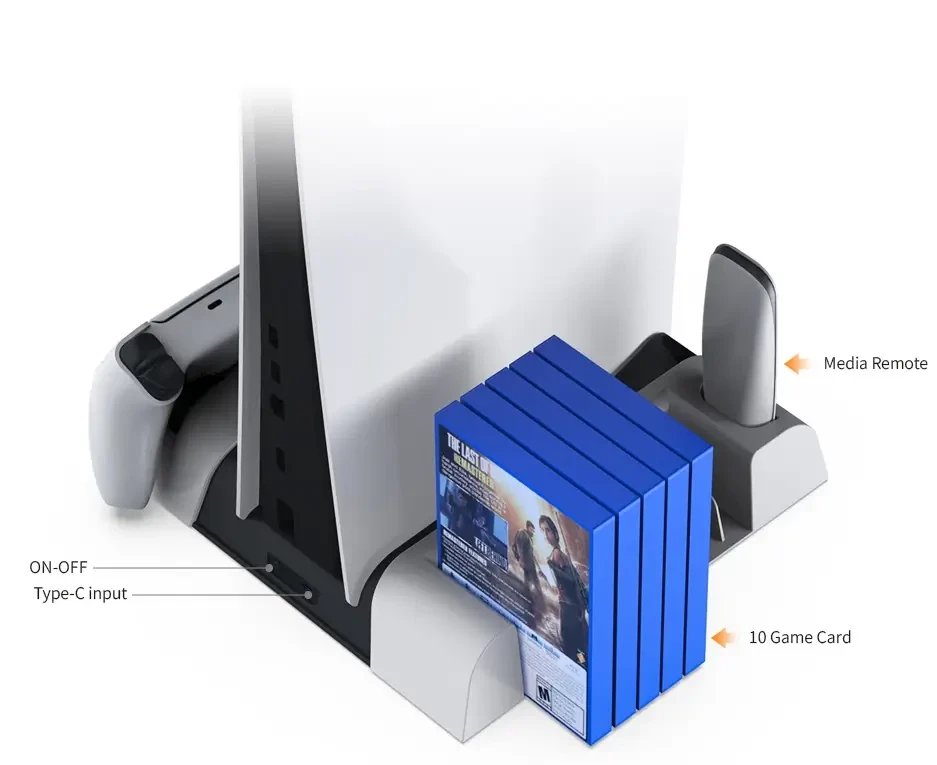 Elevate your gaming experience with Dobe's high-performance cooling stand designed for the PlayStation 5 both physical and digital versions. Enhance your gaming experience and save space with its three fan speeds (High, Medium, Low), 11 game cards slots, and dual charging docks for DualSense controllers.
