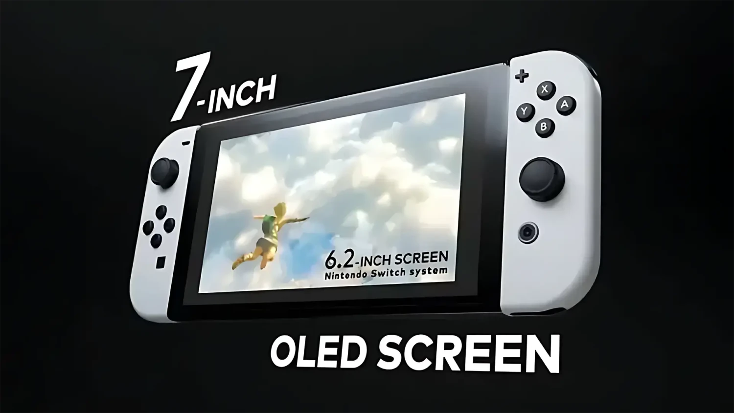 Meet the newest member of the Nintendo Switch family The new system features a vibrant 7-inch OLED screen, a wide adjustable stand, a dock with a wired LAN port, 64 GB of internal storage, and enhanced audio.