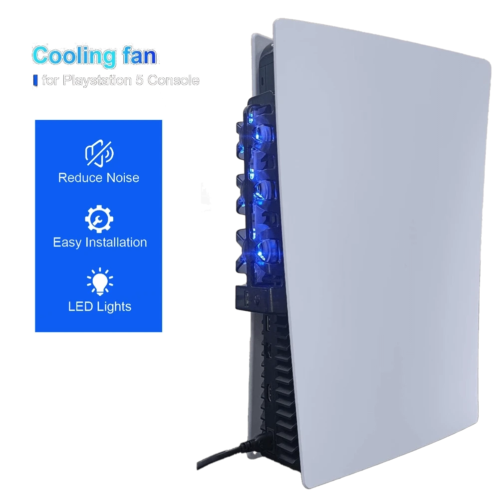 Enhance your PS5 experience with our high-performance cooling fan, compatible with both disc and digital versions. Effectively reduces console temperature with three cooling fans adorned with blue LED lights. Enjoy smooth, quiet gaming sessions while keeping your PS5 cool and reliable.