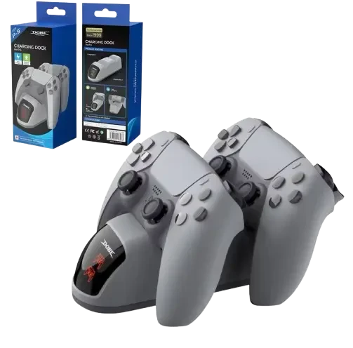 The DOBE Dual Charging Stand is the ultimate solution for charging your PS5 DualSense controllers. Designed with efficiency and convenience in mind, this stand simultaneously charges two controllers with precision. Its compact, stylish design blends seamlessly into any gaming setup. The LED charging indicators allow you to monitor the charging status effortlessly, while the overcharge protection ensures safety and extends your controller's lifespan. Powered directly via USB,after connecting the stand to power. Keep your gaming area organized and your controllers ready for action with this essential accessory. Perfect for all PS5 gamers who value reliability and style!