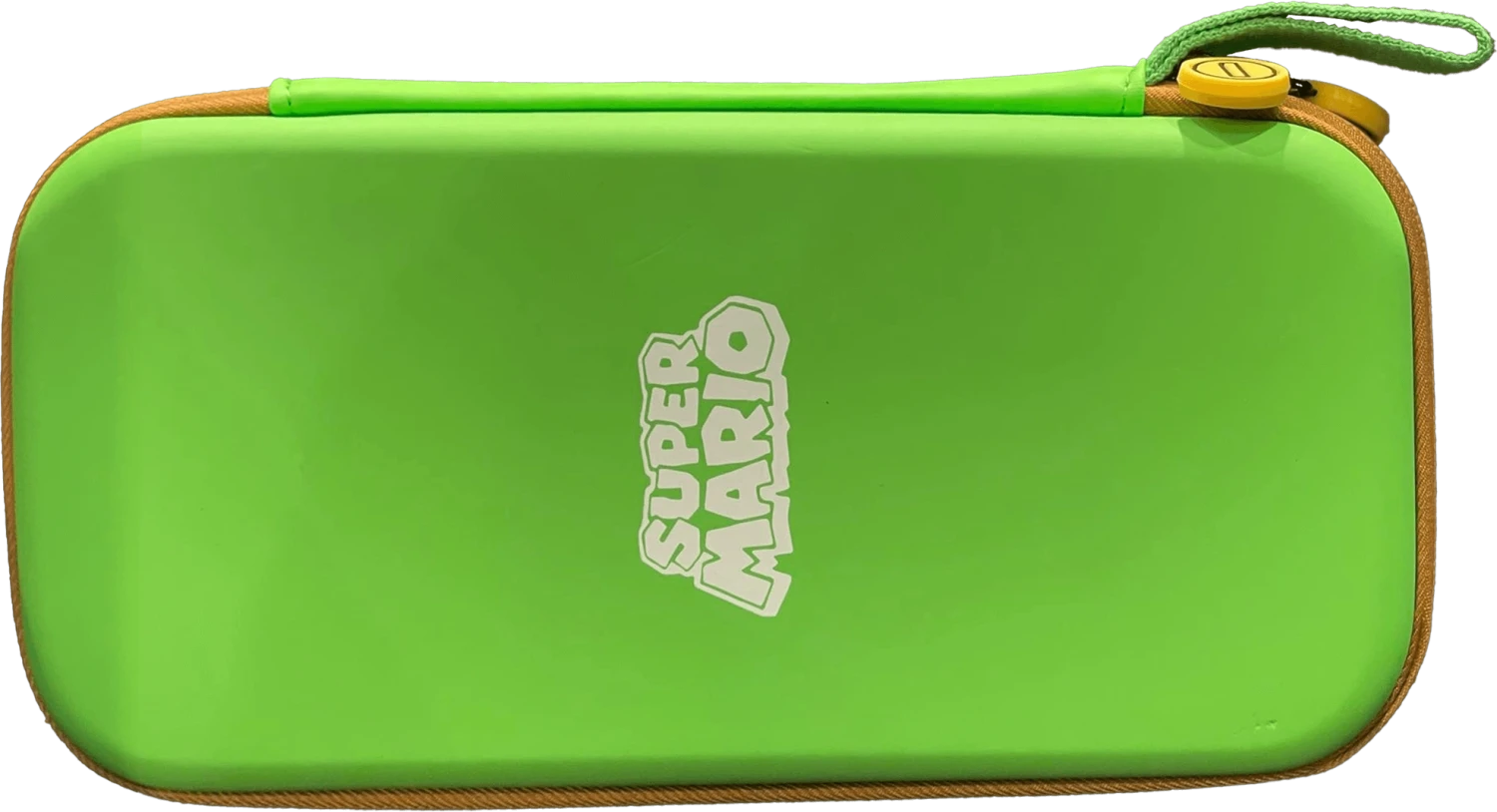 Luigi Case for Nintendo Switch or Nintendo Switch Lite. It has a hard shell with a rubberized handle and dual zipper pull. The interior of the case is moulded with felt lining and a pouch that fits both systems. It has a screen-protector flap which includes 10 slots for your game cards.