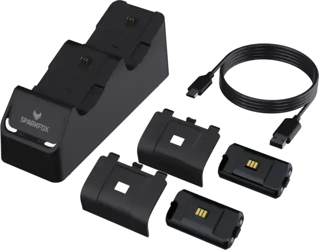 Elevate your gaming experience with the Sparkfox Dual Charging Station for Xbox Series X/S and Xbox One controllers. Stay in the action with LED charge indicators, ensuring your controllers are always ready. Includes 2 rechargeable batteries and USB connectivity for seamless charging. Have it at the best price!