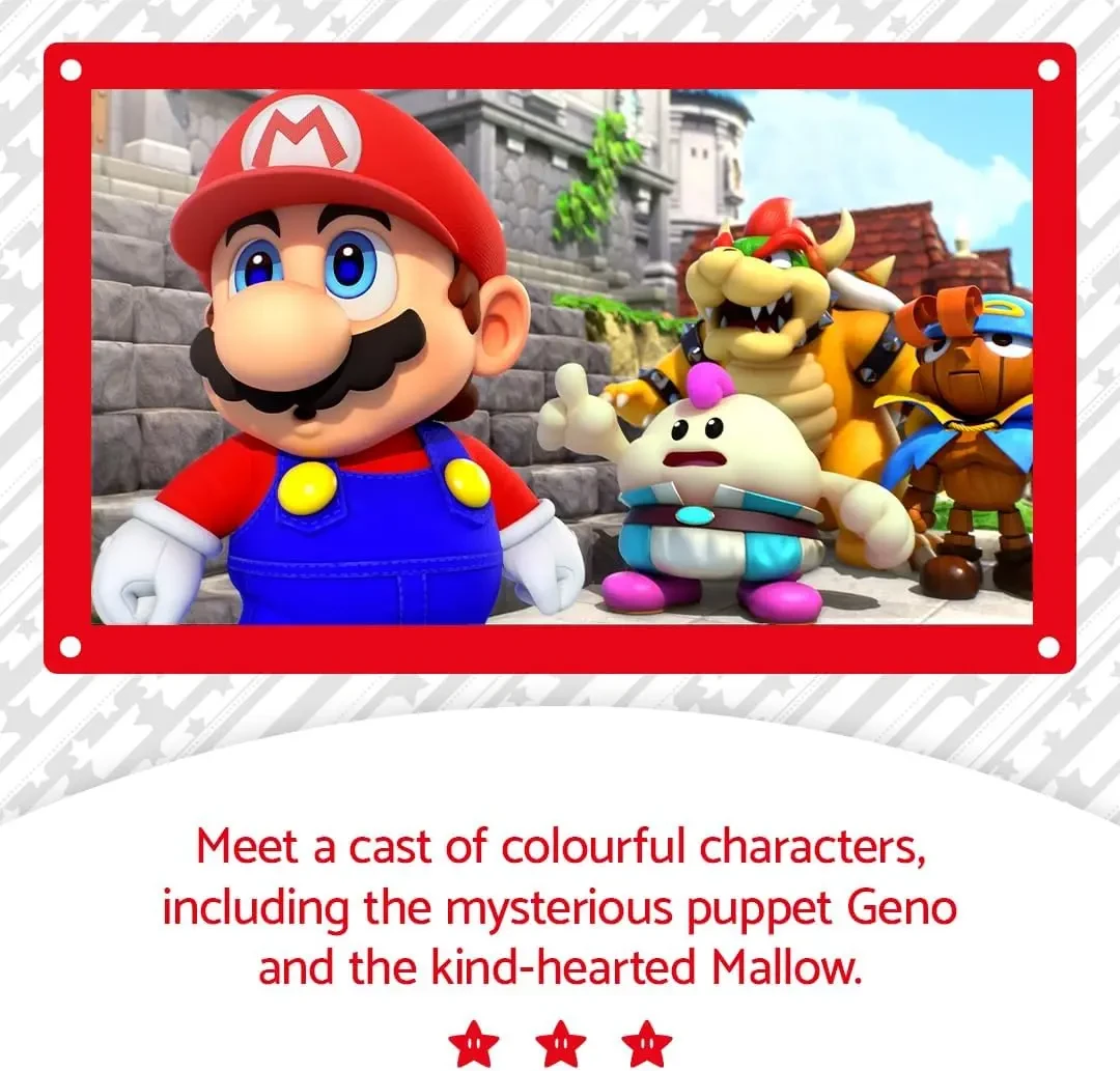 Join Mario and friends in Super Mario RPG on Nintendo Switch! This legendary role-playing adventure returns with enhanced visuals, refined gameplay, and classic turn-based battles. Team up with iconic characters, explore vibrant worlds, and take on the sinister Smithy Gang in this unforgettable RPG experience!